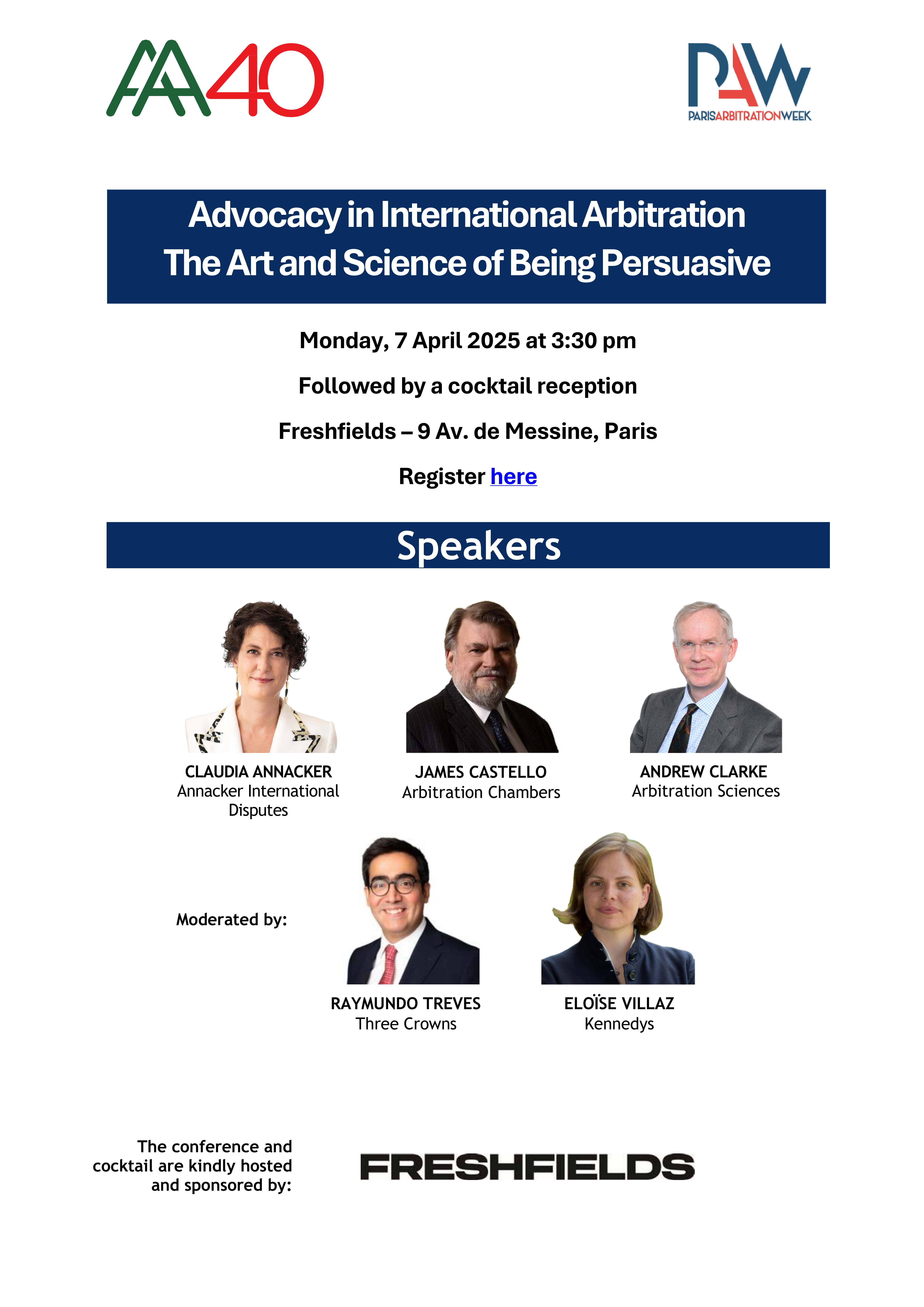 Join us during Paris Arbitration Week for an insightful panel discussion on “Advocacy in International Arbitration: The Art and Science of Being Persuasive”. This is an incredible opportunity to hear directly from leading arbitration and psychology specialists as they share best practices and key insights from scientific research on how to become better advocates.