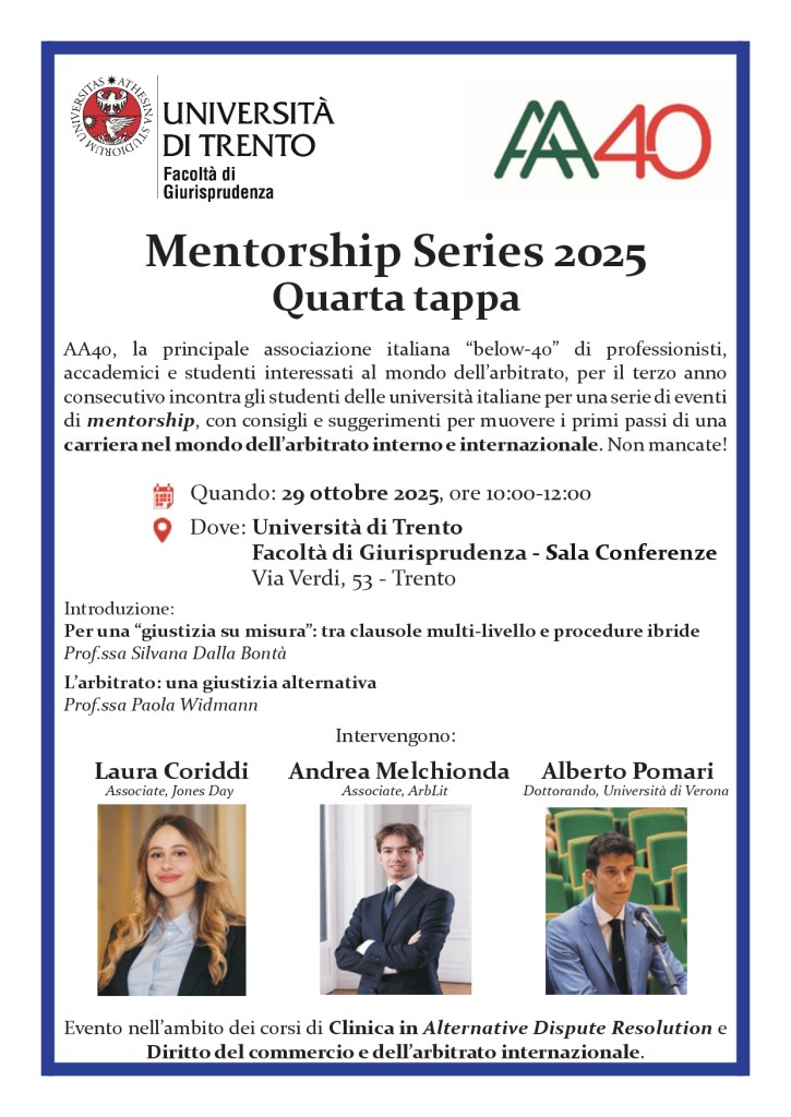 We are very pleased to announce that, for the first time, AA40’s Mentorship Series will soon stop at Università di Trento!