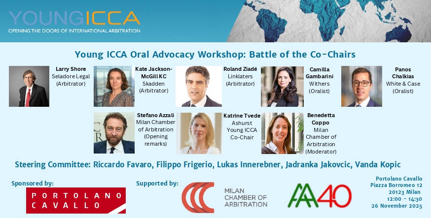 Within the context of the 2025 Annual Conference of the Camera Arbitrale di Milano, AA40 is proud to support this fantastic event, organized by Young ICCA.