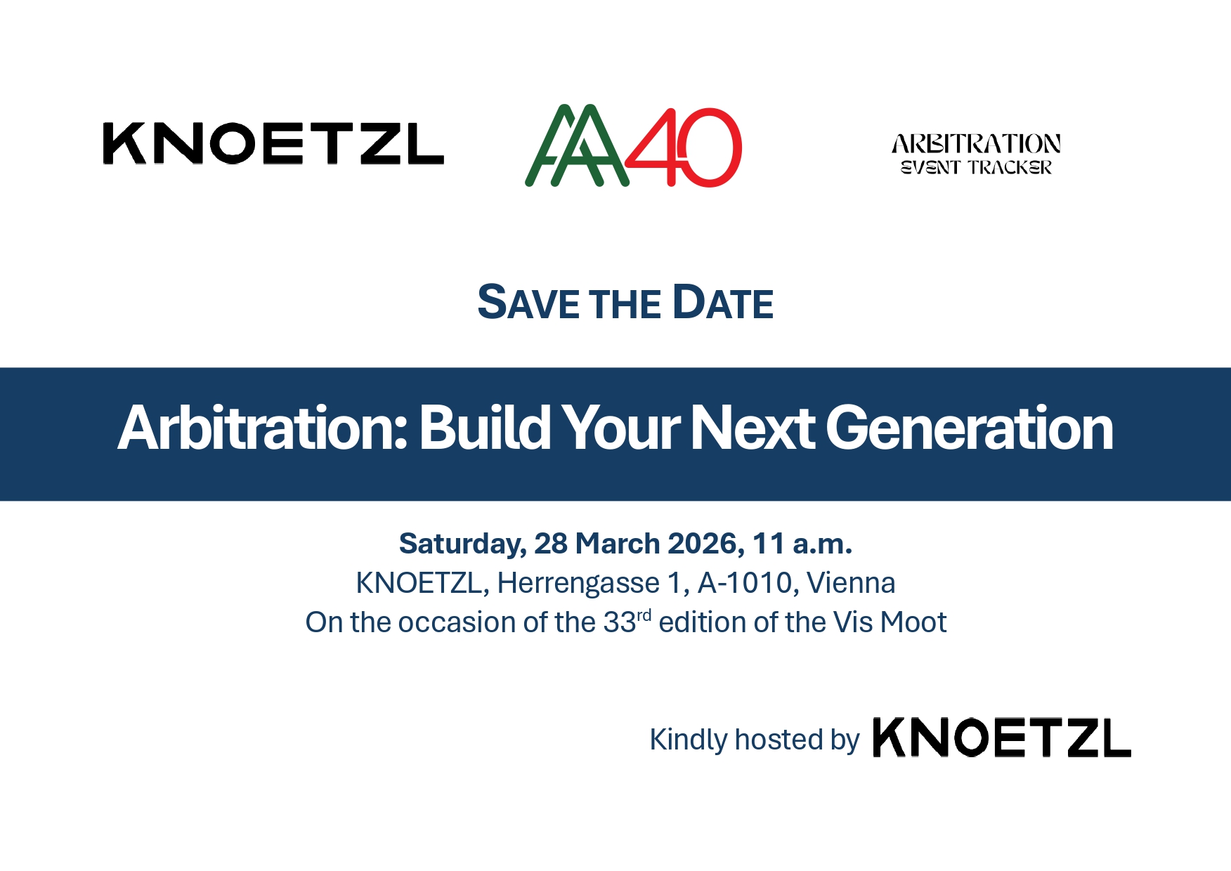 On the occasion of the 33rd Edition of the Vis Moot, AA40 – The Italian below40 Arbitration Association and The Arbitration Event Tracker are pleased to jointly organize the conference: โArbitration: Build Your Next Generationโ.