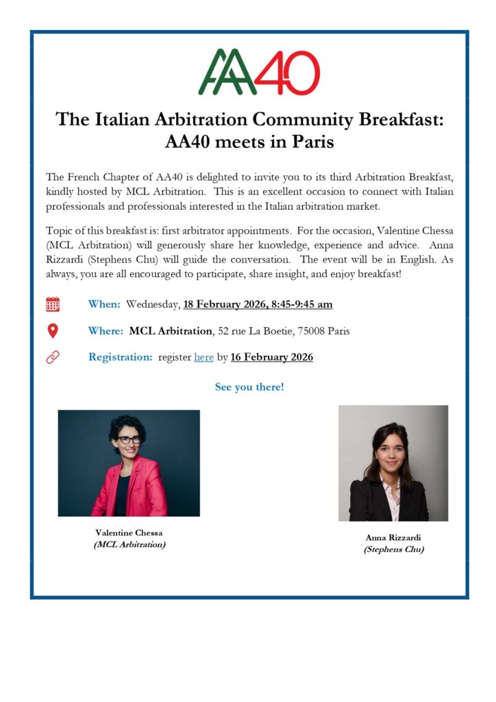 Join our French Chapter in Paris for its third Arbitration Breakfast.